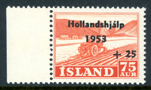 Iceland 1953 Ship 75a+25a Red Orange Scott #B12 Mint Non Hinged T22