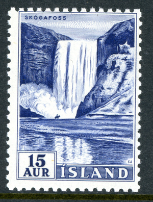 Iceland 1956 Waterfall 15a Blue Scott #289 Mint Non Hinged T36