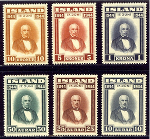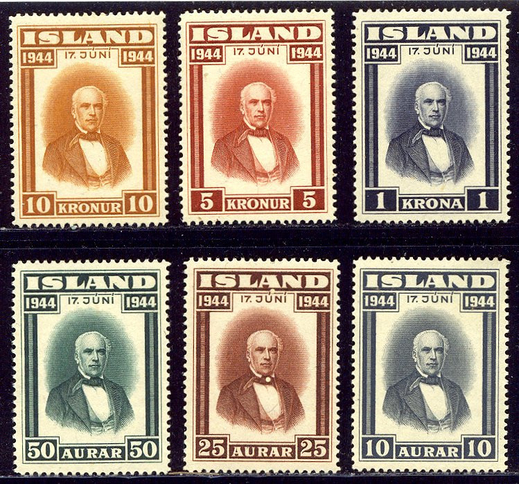 Scott #240-45: 1944 Sigurdsson Set Centering & Condition: Mint. Fresh. Very Fine set. Reverse (Gum Side): Original gum. Never Hinged. Faults / Imperfections: None The item pictured is the actual item you are purchasing, unless otherwise noted. I also offer an interest-free layaway plan. Ask me about it!" All items will be mailed a day or two after payment is received. --------------------------------------------------------------------------------