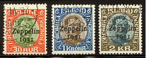 ICELAND #C9-11 SCARCE Used - 1931 Zeppelin Set