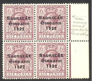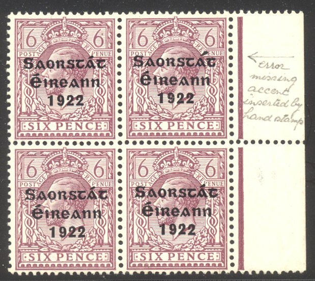 Scott #52a: 1922 6p Dull Violet, Accent Added Centering & Condition: Mint. Fresh. Very Fine block with the Upper Right stamp the Scarce variety. Reverse (Gum Side): Original gum. Top (2) Hinged; Bottom NH. Faults / Imperfections: None The item pictured is the actual item you are purchasing, unless otherwise noted. I also offer an interest-free layaway plan. Ask me about it!" All items will be mailed a day or two after payment is received. --------------------------------------------------------------------------------