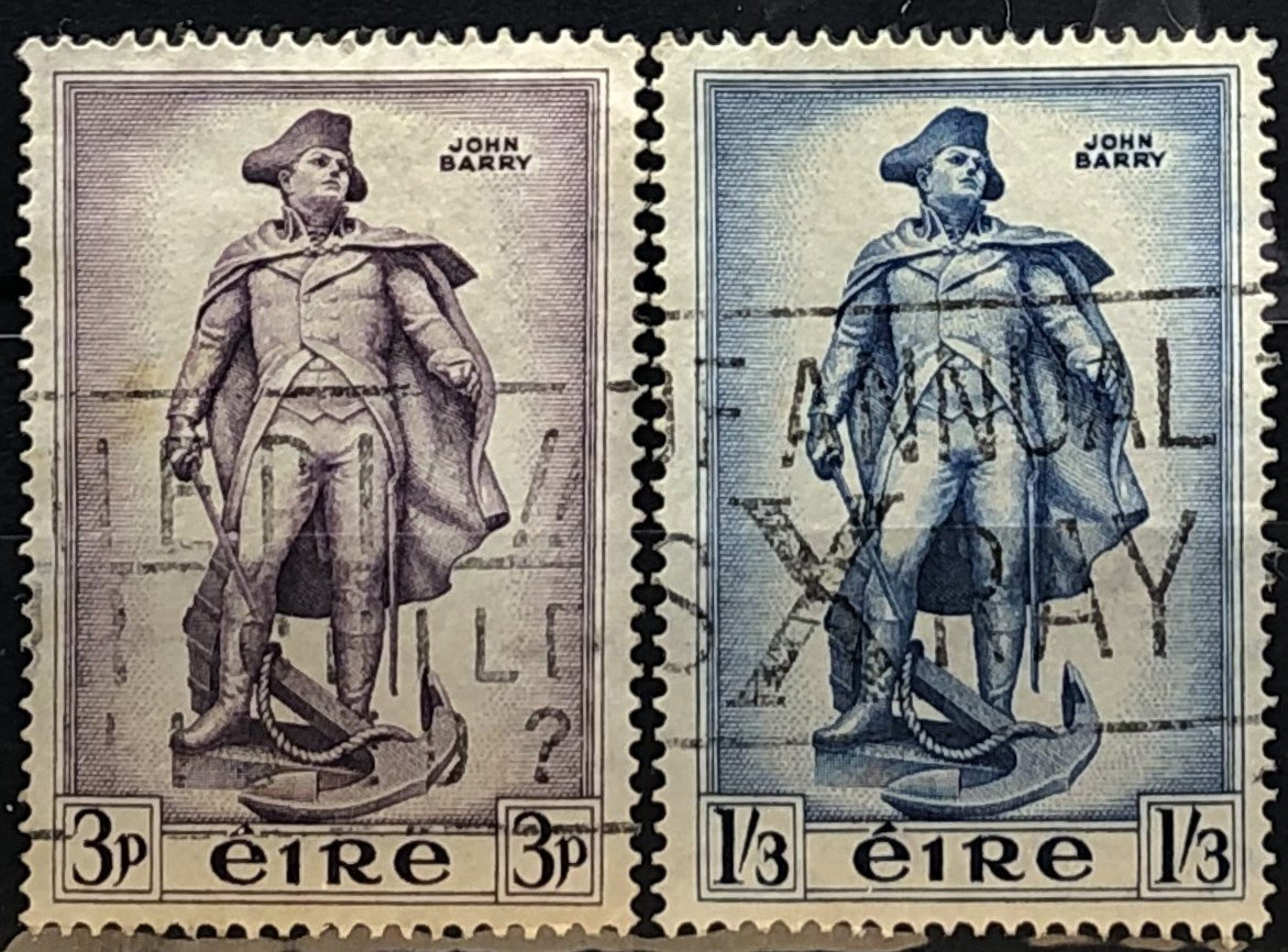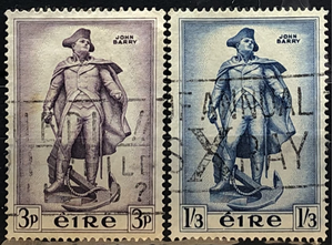 Statue of John Barry, "Father of the American Navy," on the occasion of the unveiling of a statue in Wexford, Ireland, his birthplace, 1956. Complete set of 2.
