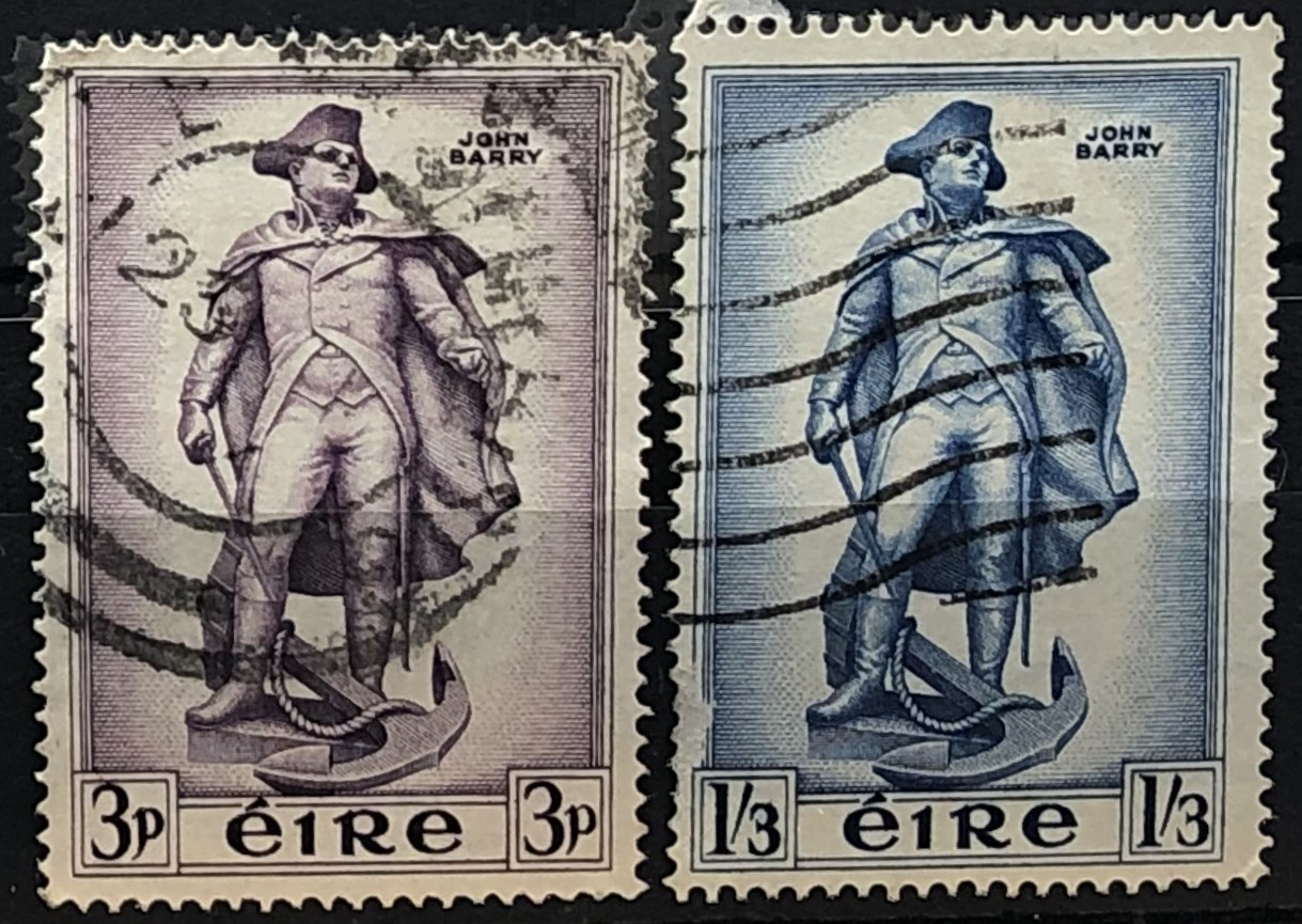 Statue of John Barry, "Father of the American Navy," on the occasion of the unveiling of a statue in Wexford, Ireland, his birthplace, 1956. Complete set of 2.