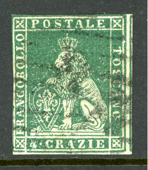 Italy 1851 Tuscany 4cr Green Scott #6 VFU M862