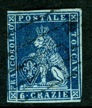 Italy 1851 Tuscany 6cr Slate Blue Wmk Scott #7 VFU T714 ⭐⭐⭐⭐