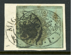 Italy 1852 Papal States Sc#2a on Piece "Migliaro" Cancel F876