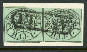 Italy 1852 Papal States Sc#2a Pair on Piece "Ascoli" Cancel "V14" on back F874