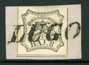 Italy 1852 Papal States Sc#9 "Lugo" Cancel on Piece Signed on Back F879