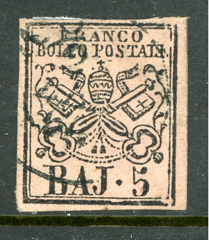 Italy 1852 Roman (Papal) States 5b Pale Rose Scott #5a VFU M987 ⭐⭐⭐⭐⭐