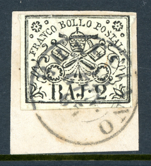 Italy 1852 Roman States 2b Yellow Green Scott #3a VFU O361
