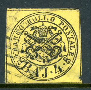 Italy 1852 Roman States 4b Yellow Scott #5a VFU O378