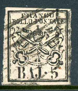 Italy 1852 Roman States 5b Pale Rose Scott #6A VFU O381