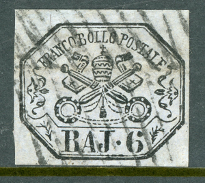 Italy 1852 Roman States 6b Gray Lilac Scott #7b VFU O392