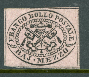 Italy 1852 Roman States ½b Dull Violet Scott #1 Mint O342