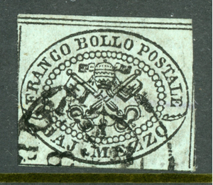 Italy 1852 Roman States ½ Baj Gray Blue Scott #1a VFU L435