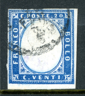 Italy 1855 Sardinia 20¢ Sky Blue Scott #12e VFU L376