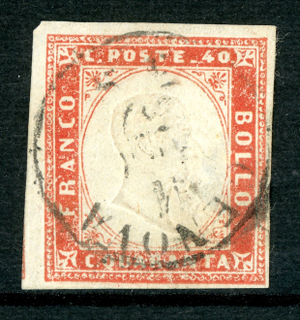 Italy 1857 Sardinia 40¢ Brown Red Scott #13v Mint Q257