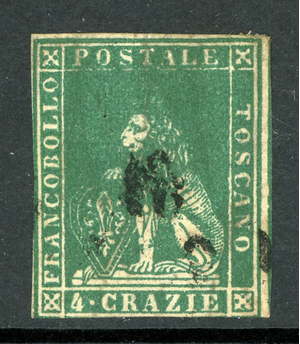 Italy 1857 Tuscany 4cr Green Scott #14 VFU T717 ⭐⭐⭐⭐