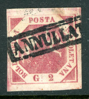 Italy 1858 Two Sicilies 1g Lake Scott #2 VFU M900