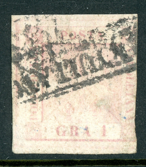 Italy 1858 Two Sicilies 1g Pale Lake Scott #2 VFU M897
