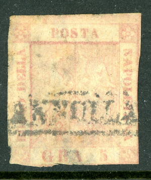 Italy 1858 Two Sicilies 5g Rose Lake Scott #4a VFU M907