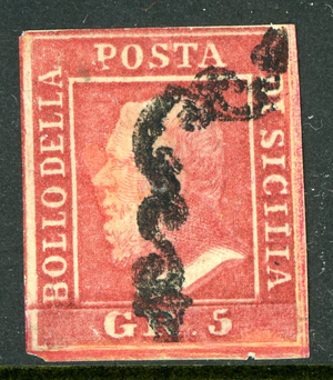 Italy 1859 Sicily 5 Gr Deep Rose Scott #14 Mint M830