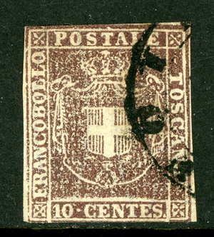 Italy 1860 Tuscany 10¢ Purple Brown Scott #19b VFU T740 ⭐⭐⭐⭐