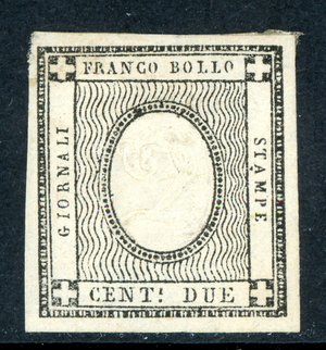 Italy 1861 Sardinia 2¢ Black Scott #P2 Mint T711 ⭐⭐⭐⭐