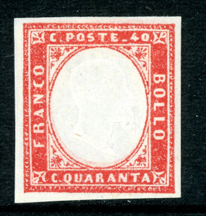 Italy 1861 Sardinia 40¢ Vermillion Scott #13d Mint Q256
