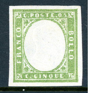 Italy 1862 Sardinia 5¢ Yellow Green Scott #10a Mint O201