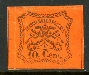 Italy 1868 Roman (Papal) States 10¢ Vermillion Imperf Scott #15 Mint T733 ⭐⭐⭐⭐