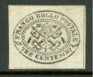 Italy 1868 Roman (Papal) States 3¢ Gray Imperf Scott #13 Mint T731 ⭐⭐⭐⭐