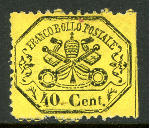 Italy 1868 Roman (Papal) States 40¢ Yellow Glazed Scott #24a Mint T728 ⭐⭐⭐⭐
