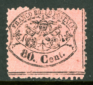 Italy 1868 Roman (Papal) States 80¢ Rose Lilac Glazed Scott #25 Mint T729 ⭐⭐⭐⭐