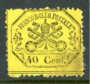 Italy 1868 Roman States 40¢ Black/Yellow Scott #24a Mint L412