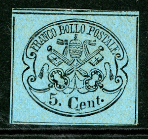 Italy 1868 Roman States 5¢ Light Blue Scott #21c Mint M547