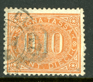 Italy 1869 Postage Due 10¢ Scott #J2 VFU T439