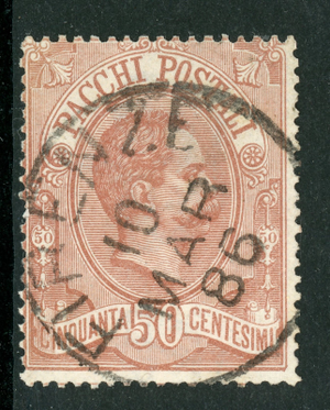Italy 1884 Parcel Post 50¢ Claret Scott #Q3 VFU E544