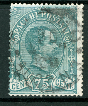 Italy 1884 Parcel Post 75¢ DARK Blue Green Scott #Q4 VFU E529