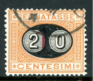 Italy 1890 Postage Due 20¢/1¢ Lire Scott #J26 VFU T453