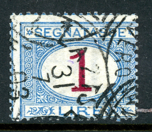 Italy 1894 Postage Due 1 Lire Lire Scott #J14 VFU T455
