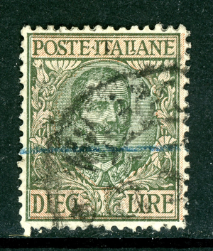 Italy 1910 Definitive 10 Lire Green & Orange Red Scott #114 VFU P216