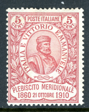 Italy 1910 Garibaldi 5¢ Claret Scott 117 Mint R550