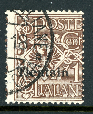 Italy 1917 Tientsin Overprint 1¢ Brown Scott #5 VFU R480