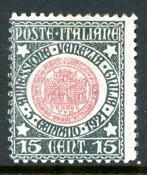 Italy 1921 Venezia Giulia 15¢ Black & Rose Scott # 130 Mint R443
