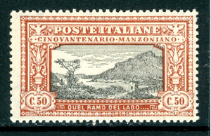 Italy 1923 Manzoniano 50¢ Orange Brown & Black Scott #168 Mint R327