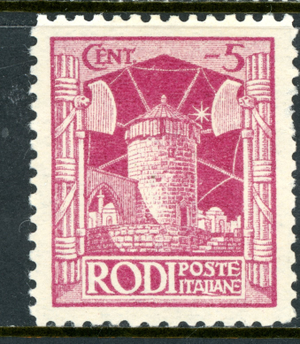 Italy 1929 Rhodes 5 Lire Magenta Scott #15v THICK Paper Mint L498