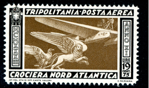 Italy 1933 Tripolitania $19.75 Lira N. Atlantic Flight Airmail Sc #C27 MNH M468