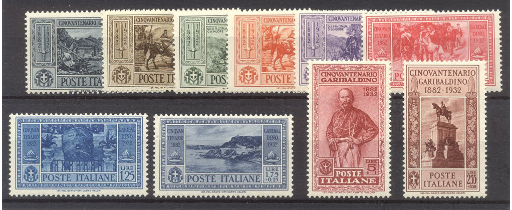 Scott #280-89: 1932 Garibaldi Set Centering & Condition: Mint. Fresh. Very Fine set. Reverse (Gum Side): Original gum. Never Hinged Faults / Imperfections: None The item pictured is the actual item you are purchasing, unless otherwise noted. I also offer an interest-free layaway plan. Ask me about it!" All items will be mailed a day or two after payment is received. --------------------------------------------------------------------------------