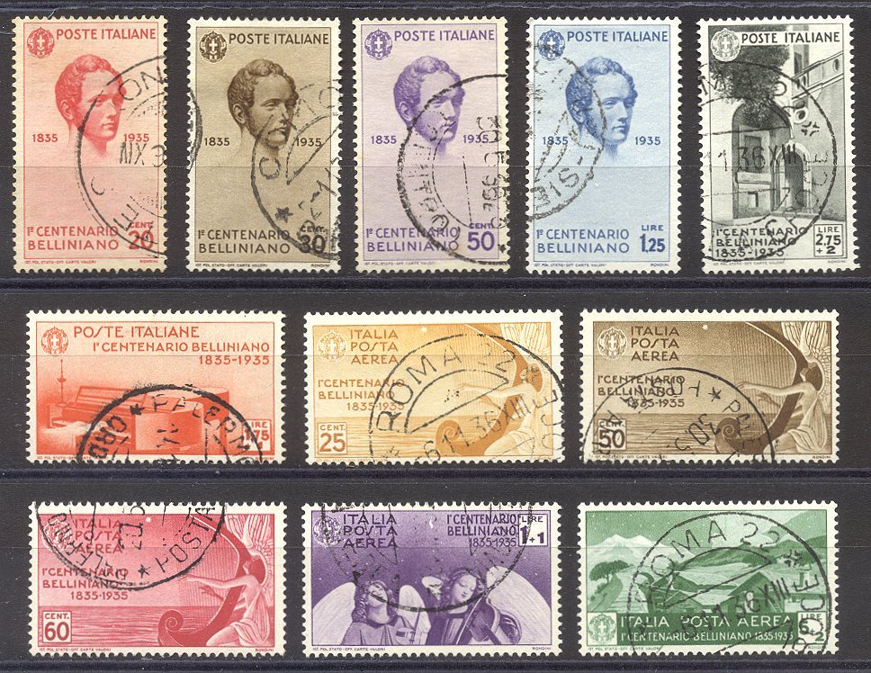 Scott #349//C83: 1935 Bellini Set Centering & Condition: Used. Very Fine set. Reverse (Gum Side): N/A Faults / Imperfections: None The item pictured is the actual item you are purchasing, unless otherwise noted. I also offer an interest-free layaway plan. Ask me about it!" All items will be mailed a day or two after payment is received. -------------------------------------------------------------------------------- Please click any of the following to read: |